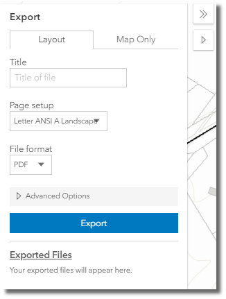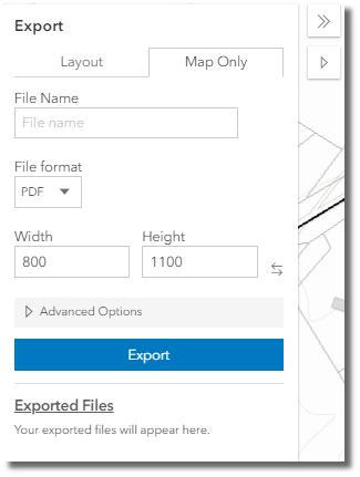 After the file name, format, and other settings are decided on, click "Export Map". A hyperlink to the exported files are shown in a frame below the "Export" button and are printed directly to the cloud where they can be opened via Adobe Acrobat and saved locally.